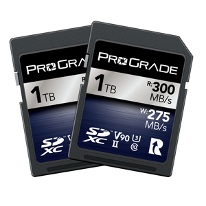 The UHS-II SDXC V90 Iridium Memory Card from ProGrade Digital features a storage capacity of up to 1TB per card and takes advantage of the UHS-II bus to support maximum read speeds of 300MB/s and maximum write speeds of 200MB/s (128GB) and 275MB/s (256GB, 512GB, and 1TB). This SD memory card has also been designed with the V90 Video Speed Class rating, which guarantees minimum write speeds of at least 90 MB/s, allowing the SDXC card to be used in DSLRs, mirrorless cameras, camcorders, and digital cinema cameras that produce rich data streams, including 6K, 5K, 4K, UHD 4K, and high bit rate MPEG-4 video. It is also well-suited for raw photos and rapid-fire bursts.